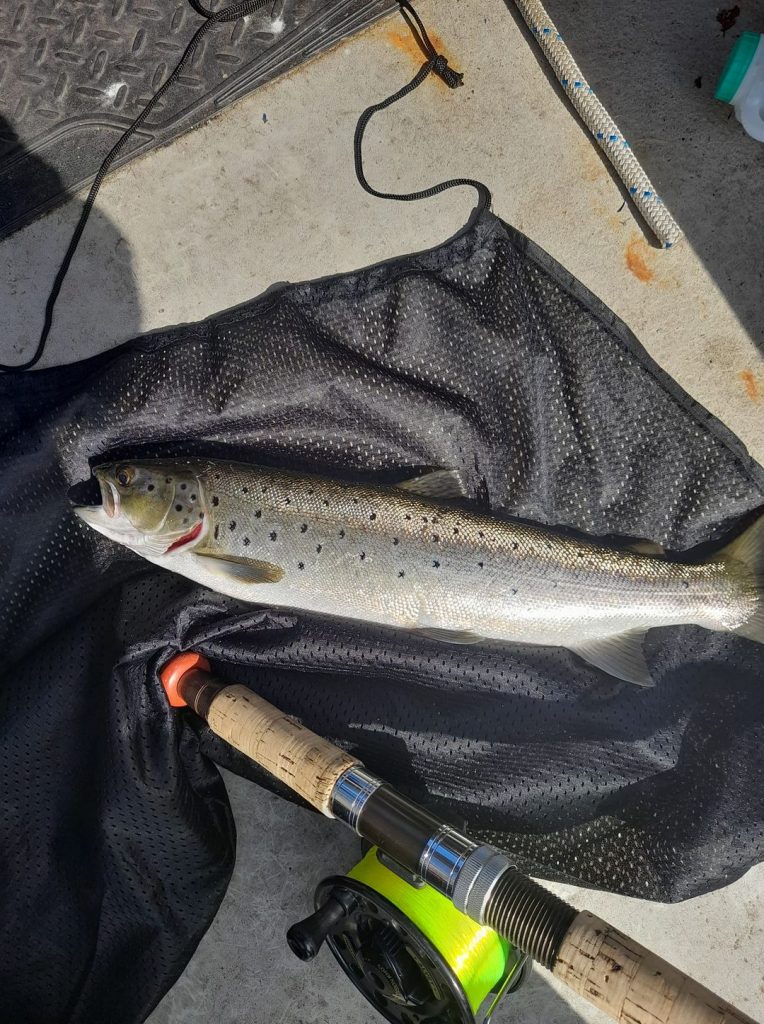 Cameron King with a nice Lomond Sea Trout of 2lb